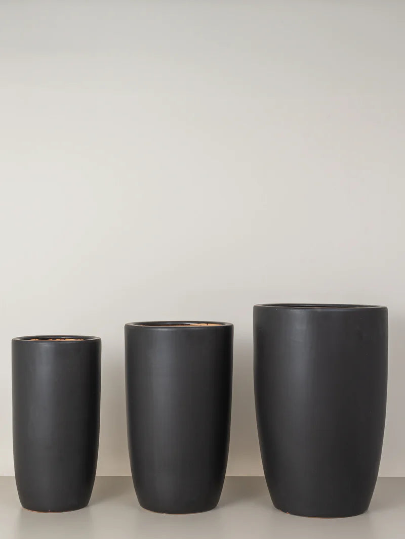 Introducing the Sam Pot Collection: a trio of tall, black ceramic pots, available in three sizes, and boasting a refined non-glossy finish. These pots redefine modern elegance with their sleek design and understated charm. The absence of a glossy finish adds a touch of subtlety, allowing the focus to remain on your plants.